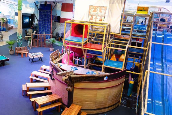 Unser riesiges Piratenschiff ist das Abenteuerparadies für kleine Freibeuter! Klettert, balanciert und versteckt euch an Bord, saust die Wellen- oder Röhrenrutsche hinunter und feuert mit den Ballkanonen auf eure Freunde.