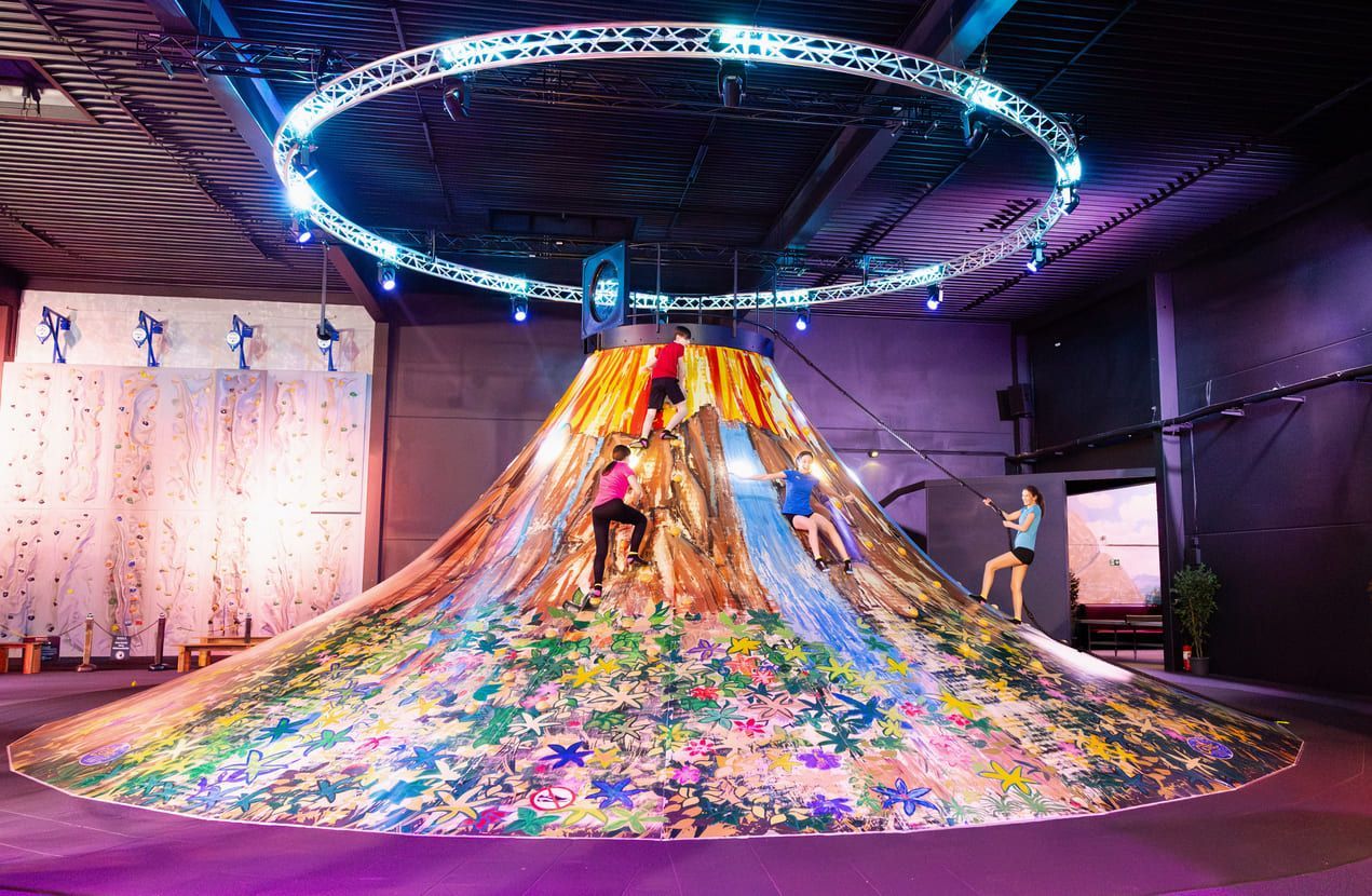 Unser cool beleuchteter Klettervulkan bringt euch ins Schwitzen: Hochklettern ist gar nicht so einfach – dafür macht das Runterrutschen umso mehr Spaß!